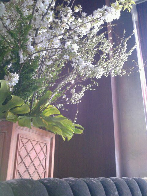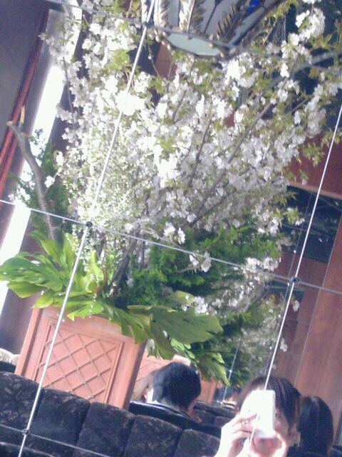 予約は窓際をと友人が手配してくれたのですが、席の後ろには桜の生木が♪