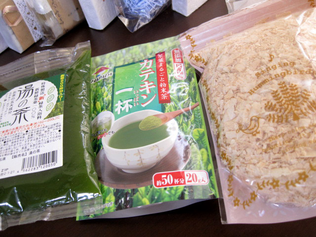 左から、「湯の茶」「粉末緑茶」「四万十ひのき」。