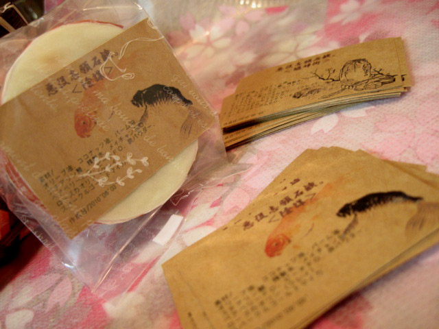 香り見本の石鹸も作り、 とりあえず完了です。 もっと和風な仕上げにしたかったのですが、 ラッピングバッグを使うと どうしても洋風な仕上がりですよね。 粗筋だけでのイメージで仕込みましたので、 作品とのイメージと違ったら申し訳ないのですが・・・。 少しでも楽しんで頂けたら幸いなのです。 頭にある何かを「カタチ」にするのって、 凄くわくわくすることだと思います。 それはきっと石鹸も舞台も 通ずる何かがあるのでしょうね。 誰かが喜んでくれる何かを カタチに出来ること。 それはとても嬉しくて楽しい物作りなのだと 私は日々思うのです。