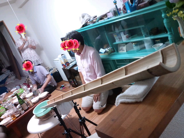 友人宅で流しそうめんを。