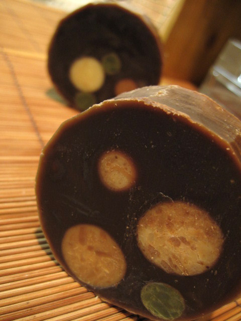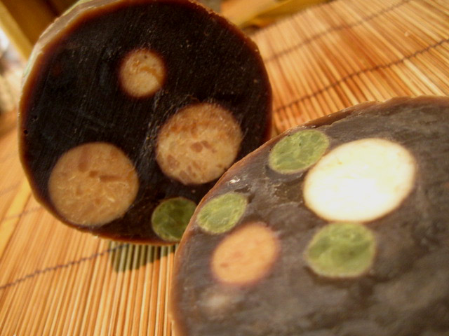 甘納豆入りの羊羹にも見えて、