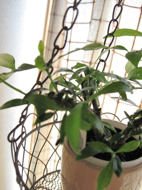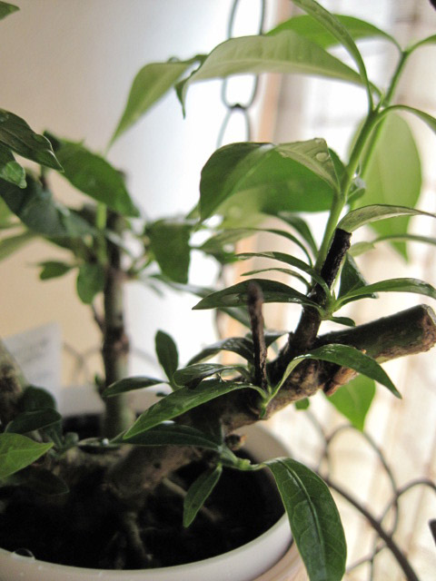 朝の水遣りの後のクチナシさん。