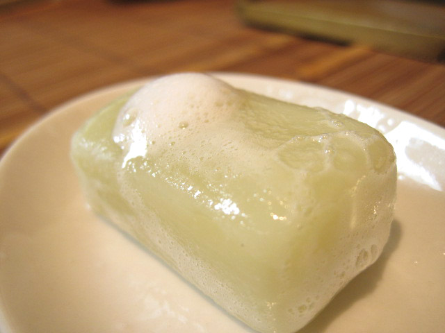 (石鹸生地にくっきりと筋が付く)