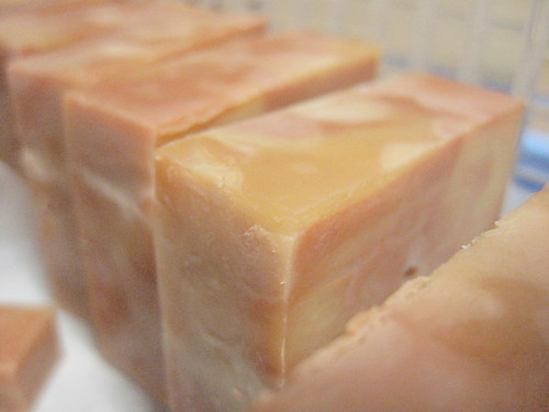 色々な石鹸に顔を近づけては香りを嗅ぎ、