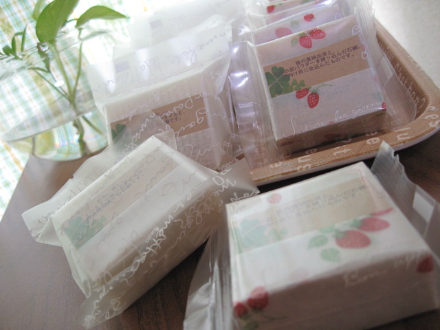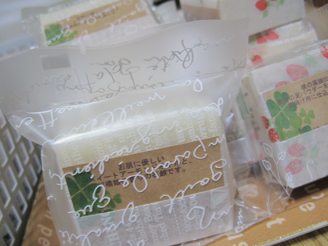 待っていたラッピングバッグに石鹸達を詰め、