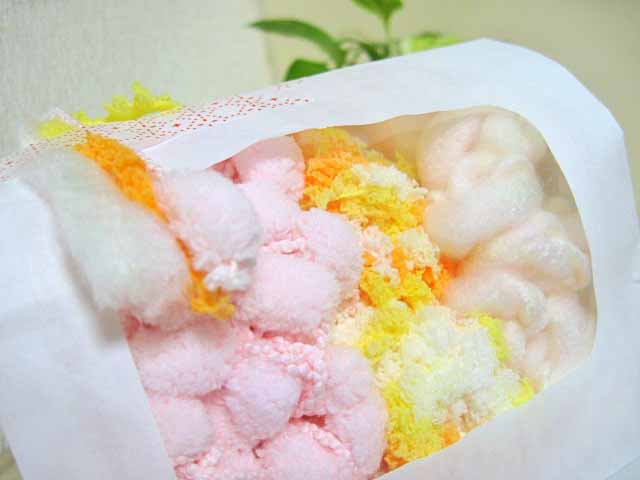 そのシュシュの毛糸を教えて貰おうという魂胆です。(笑)